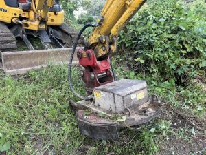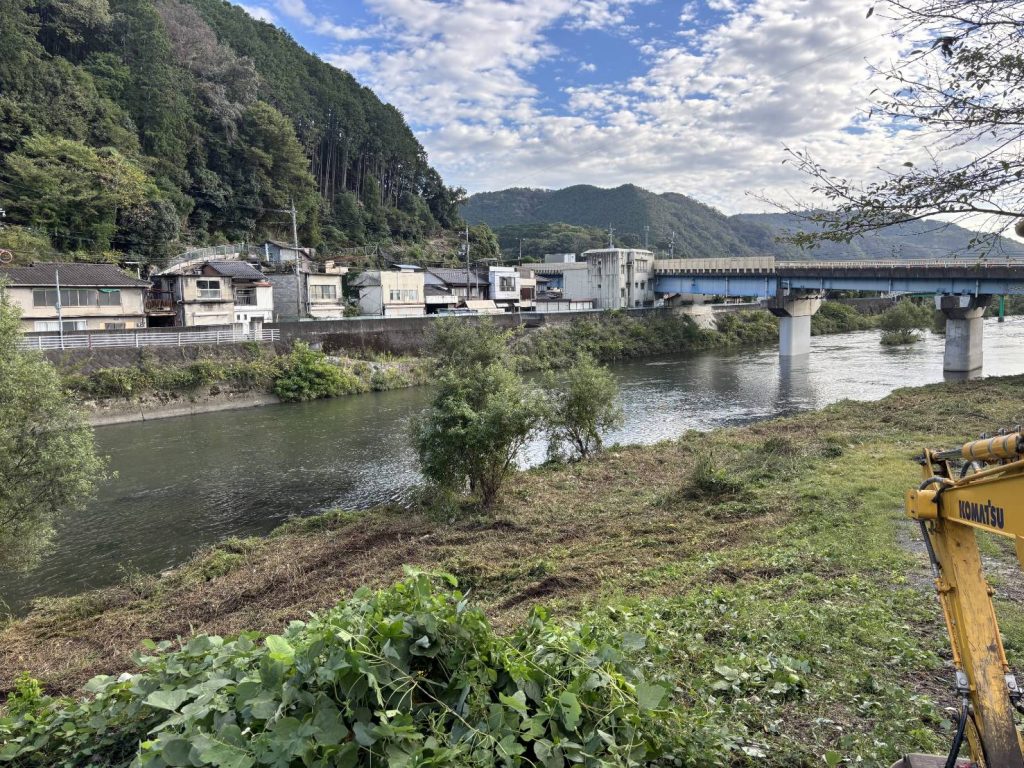 本日より、河川浚渫工事(美作市入田地内)、着手しました。